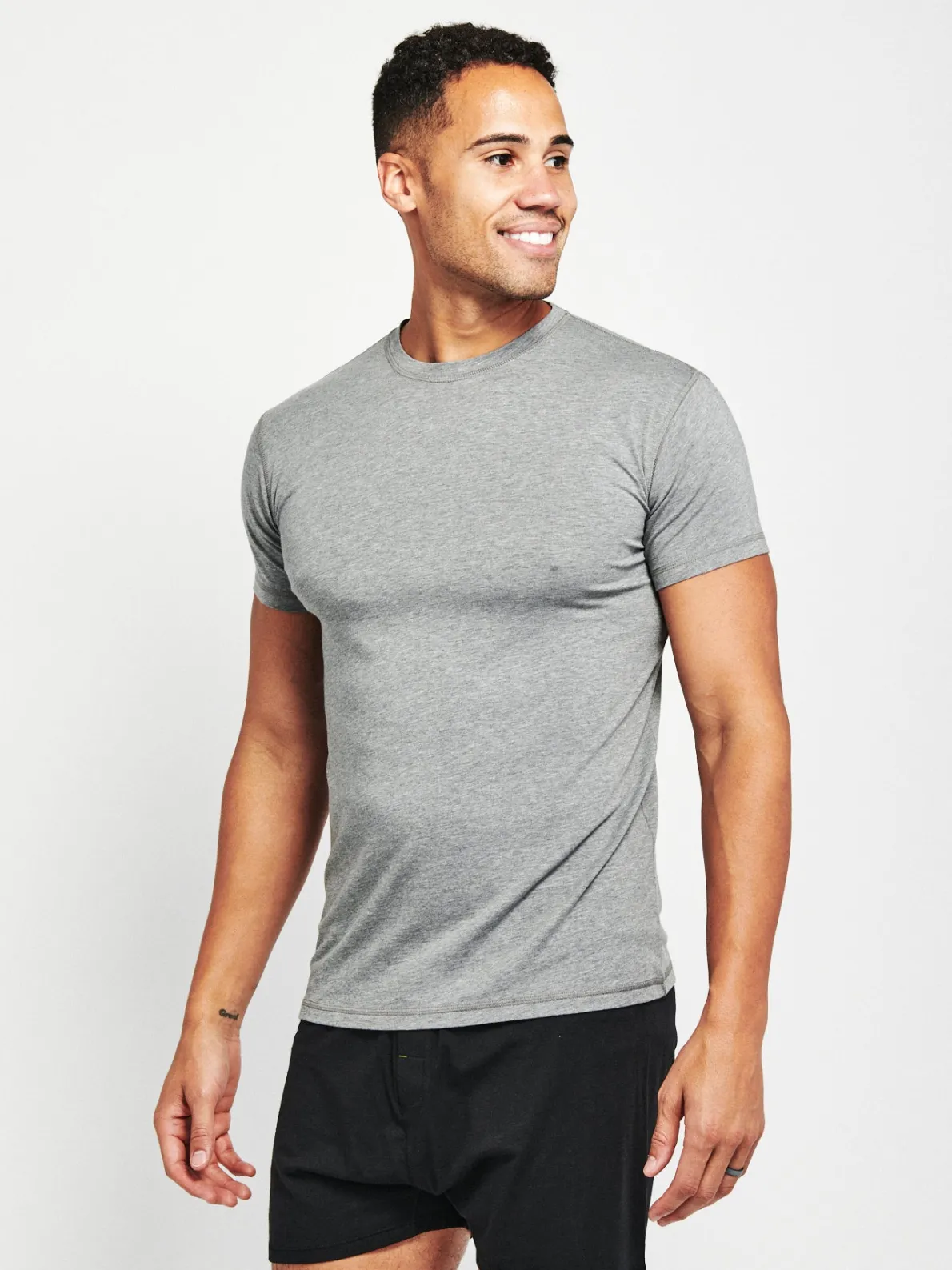Smarter than your average underwear, the BamBare Bamboo Comfort Crew Neck Undershirt feels as soft as your favorite undershirtbut has the qualities and function of your favorite workout tee.An essential wardrobe staple, our bamboo fabric provides anti-odor and moisture-wicking protection with a classic, lightweight fit that’s perfect for any activity in any season. Style #TMUC01.
